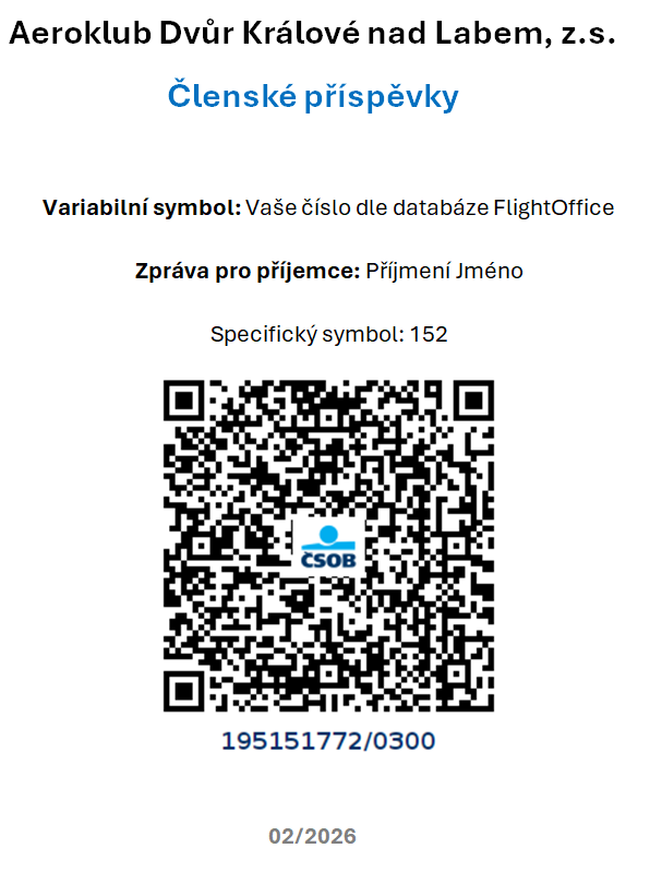 - Variabilní symbol: Index - vaše číslo dle databáze FlightOffice (FO)